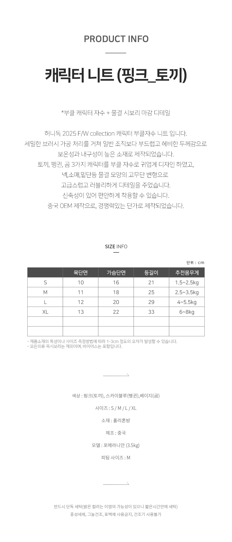 [무배] 캐릭터 니트 핑크