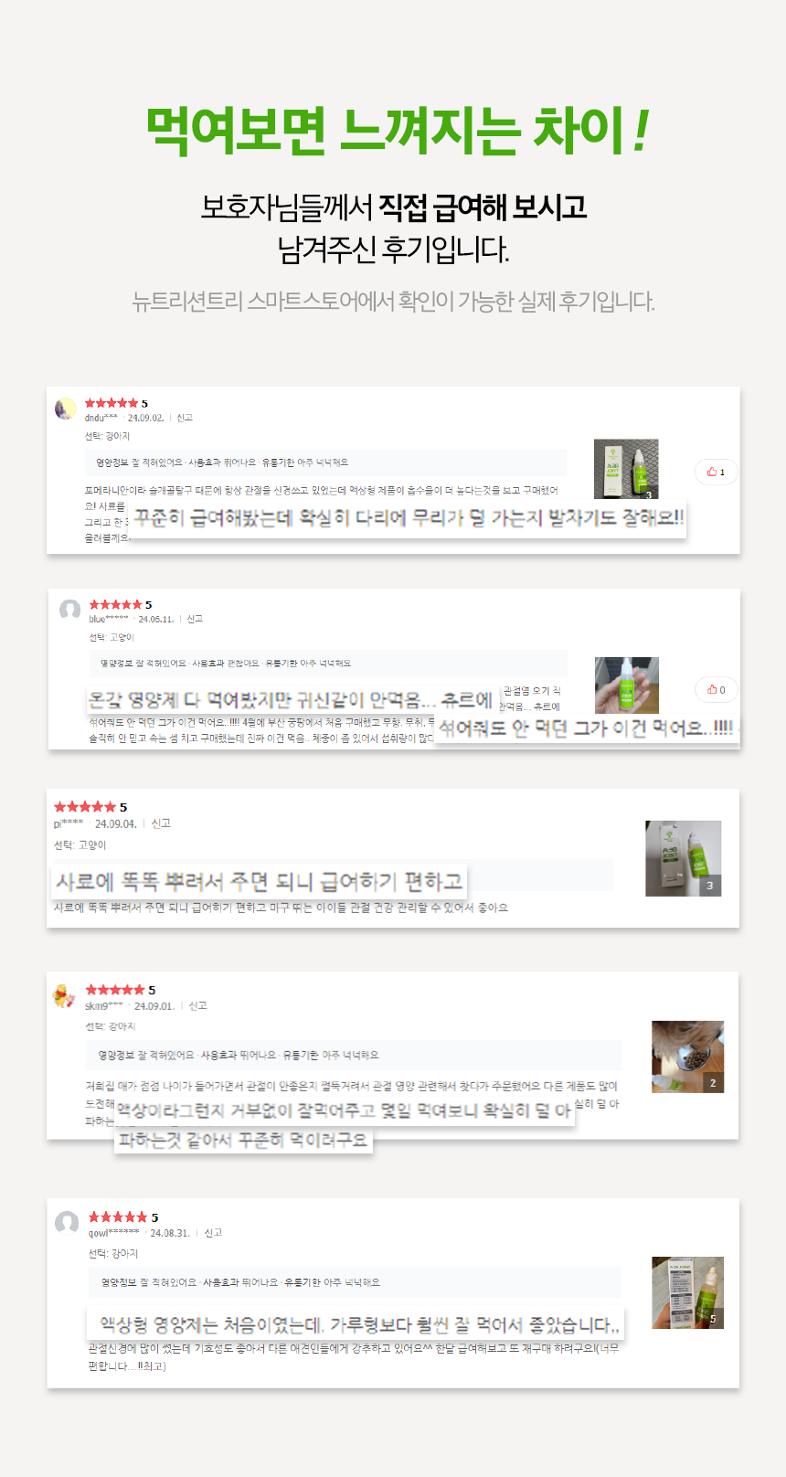 아이들의 먹거리인 사료, 간식, 영양제는